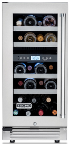 Adega Tecno Professional 38 cm, de piso e embutir, 23 garrafas, abertura à esquerda, 2 zonas, inox escovado 220V – Casa de Lila