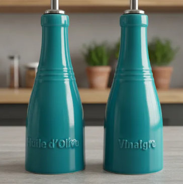 O Conjunto de Galheteiros para Óleo e Vinagre Le Creuset, na sofisticada cor Azul Caribe, é a escolha perfeita para valorizar a mesa posta com funcionalidade e elegância. Produzidas em cerâmica premium de alta densidade, as peças bloqueiam a absorção de umidade, ajudando a evitar rachaduras, fissuras e deformações, mesmo com o uso diário.