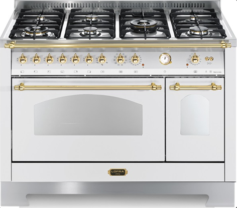 Fogão a gás Dolce Vita Branco perolizado, 120 cm, de piso e de embutir, 7 queimadores a gás, 2 fornos elétricos, Vintage, Lofra- 220V