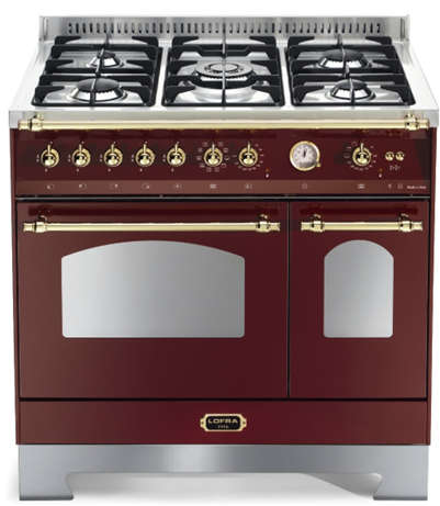 Fogão Vinho 90 cm , de piso e de embutir, 5 queimadores a gás, 2 fornos elétricos com churrasqueiras, Vintage, Lofra- 220V