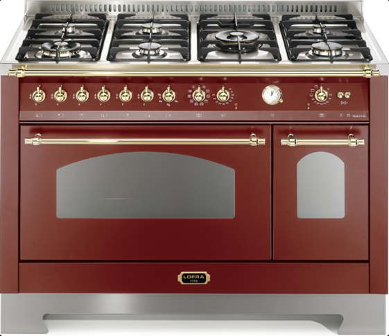 Fogão a gás Dolce Vita Vinho, 120 cm, de piso e de embutir, 7 queimadores a gás, 2 fornos elétricos, Vintage, Lofra- 220V