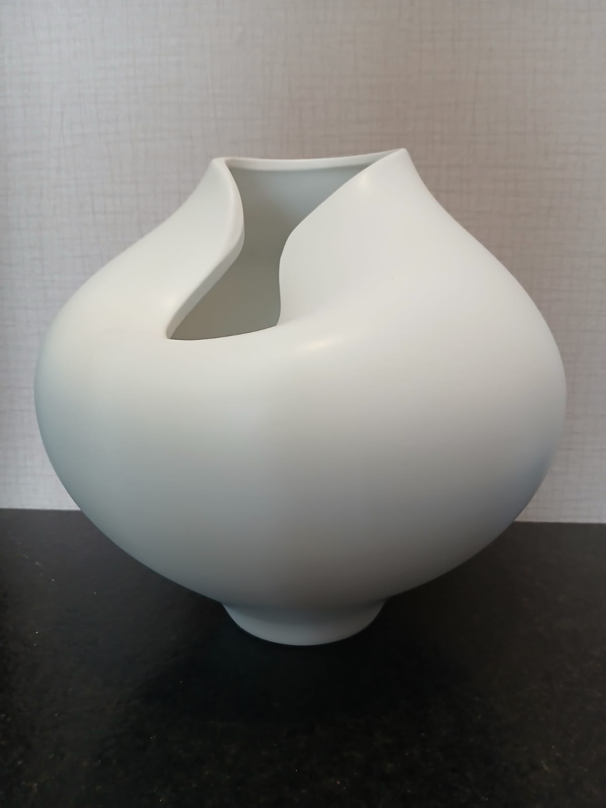 Vaso decorativo em cerâmica com forma orgânica e acabamento fosco na cor branca. Seu design contemporâneo, com linhas suaves e assimétricas, confere leveza e sofisticação ao ambiente, sendo ideal para composições com flores naturais, secas ou como peça decorativa por si só. A Cerâmica Mazzotti traz para você o que há de melhor na decoração em cerâmica brasileira.